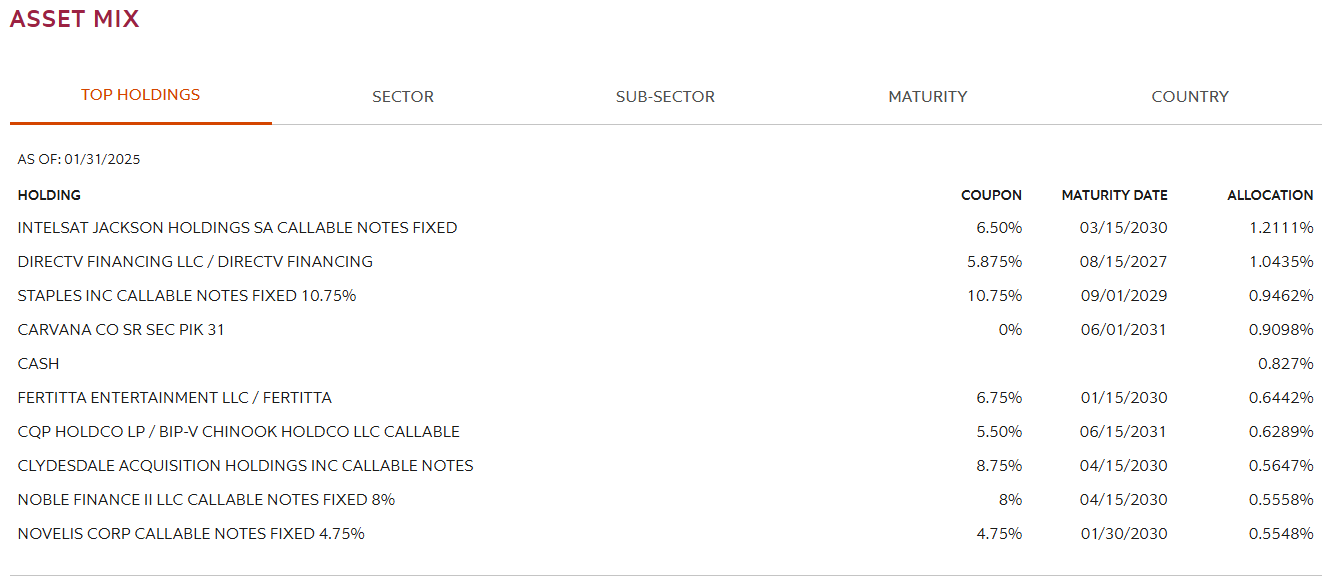 어쨌거나 신용등급 BBB 이하의 미국 하이일드 회사채에 투자한다는 것을 알 수 있다.