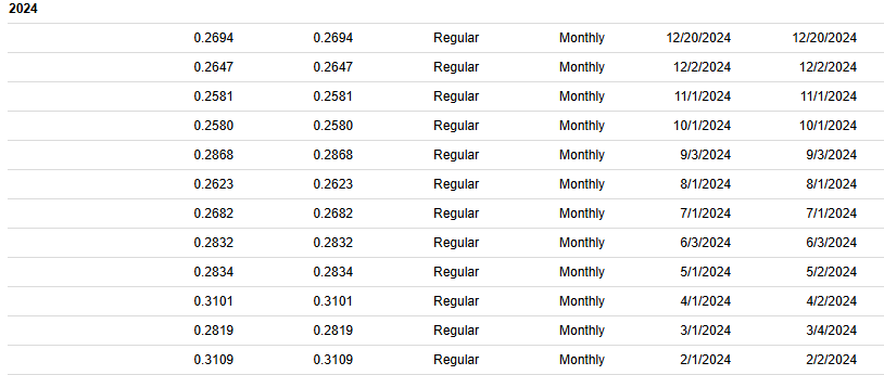 특이하게 1월은 배당금이 없고 12월에 2번 준다.