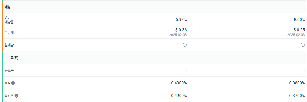 배당률은 변할 수 있으니 그렇다쳐도, 수수료는 0.1%p정도 차이나는데, 이정도면 ETF에서는 적지 않은 차이이다.