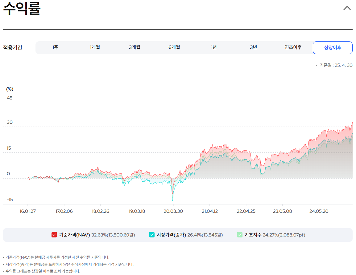 즉, 이들을 혼합한 이 ETF는 큰 수익보다는 꾸준한 배당 수익을 목표로 하는 것으로 보인다.