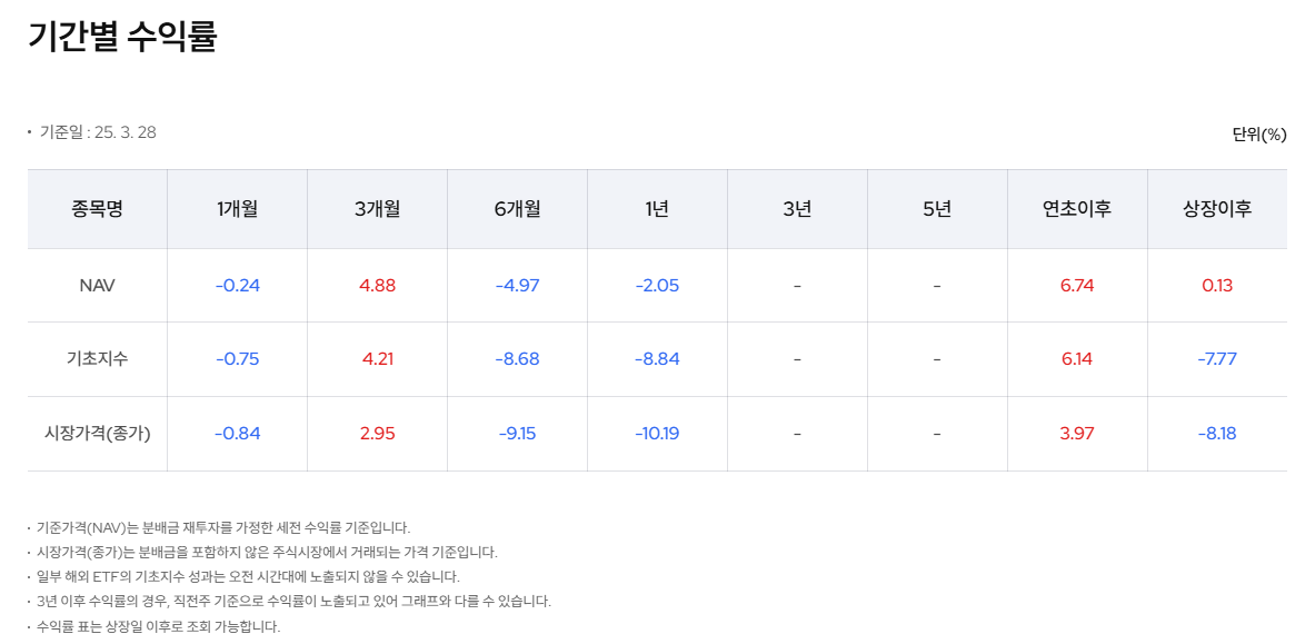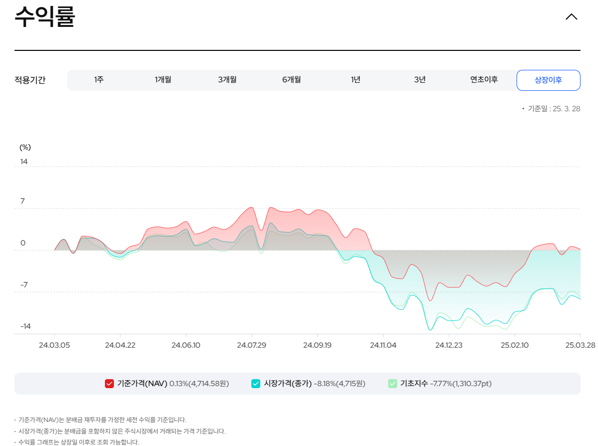 그나마 분배금 재투자를 가정하는 기준가격(NAV)는 약간의 수익이라고 되어있지만, 저정도 수익은 별 의미가 없어 보인다.
