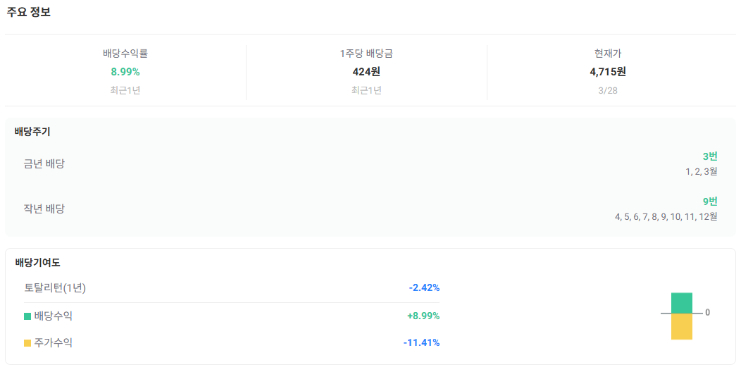 나도 투자한 적이 있었는데, 배당이 상당히 짭짤해서 배당투자를 하기 좋은 종목이다.