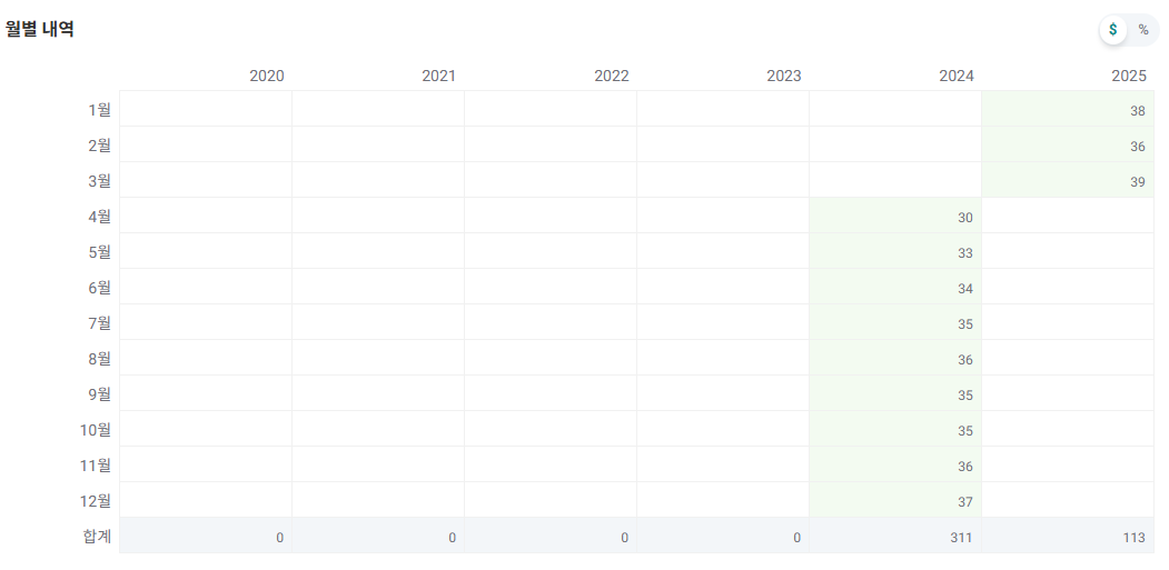 일단 그래프로 보면 그래도 조금 수익을 보나 싶었는데, 작년 말부터 완전 손실 구간으로 진입해버렸다.