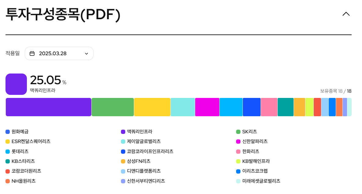 맥쿼리인프라를 제외하면 모두 리츠주임을 알 수 있다.