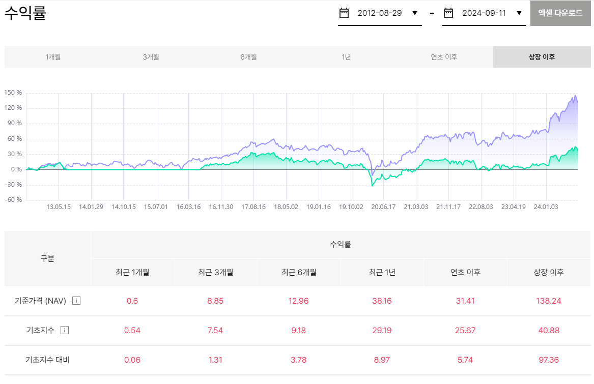이 상품은 2012년에 상장되어 10년이 넘게 운용되고 있다. 의외로(?) 상당히 오랫동안 유지되고 있는 ETF이다.