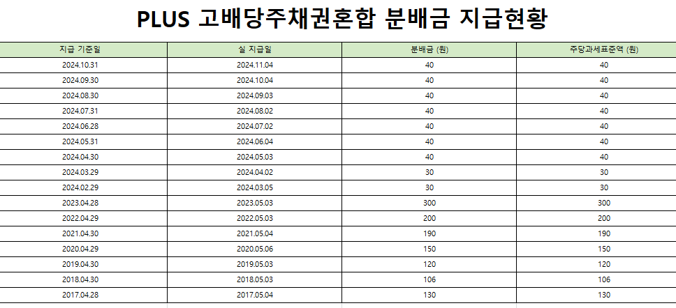 가능하면 월배당을 주는 ETF를 넣으려고 했는데, 국내 채권 ETF 중에는 월배당 상품을 못 찾았다.