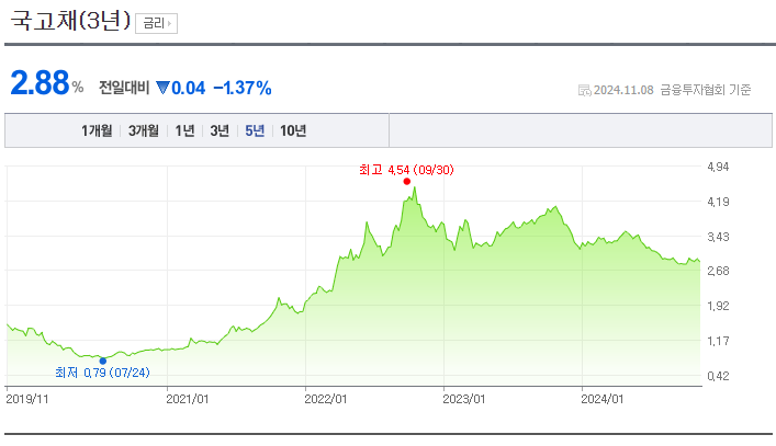 즉 국고채 3년 가격을 따라간다고 생각하면 될 것 같다.