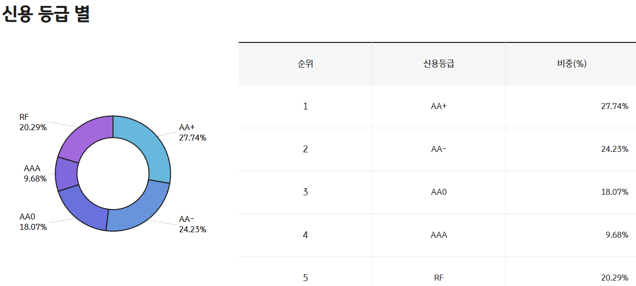 채권 신용 등급별 비중(출처: RISE 홈페이지)