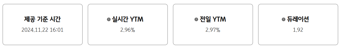 듀레이션은 1.92년으로 단기 채권으로 보는게 맞고, YTM은 3% 정도로 보면 될 것 같다.