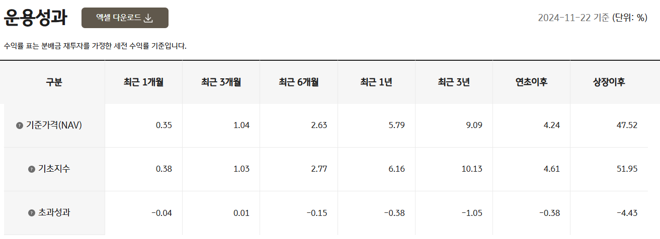 생각보다 상당히 오랫동안 운영되어 오고 있다. 채권 ETF이니 수익률이 극적이지는 않겠지만, 어차피 채권 ETF는 극적인 수익률을 바라보는 상품이 아니니 크게 의미를 두지 말자.