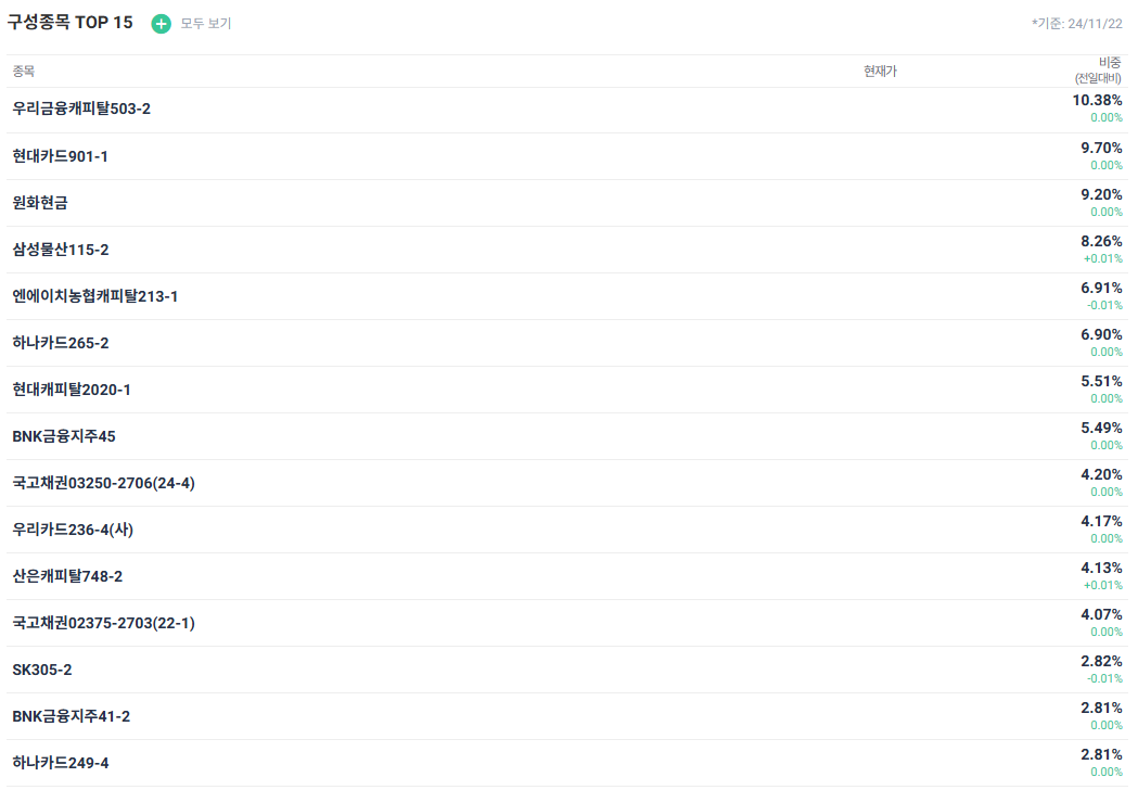 우량 회사채라고 되어있는데, 채권 내역을 보면 대부분이 금융 계열의 채권이다.