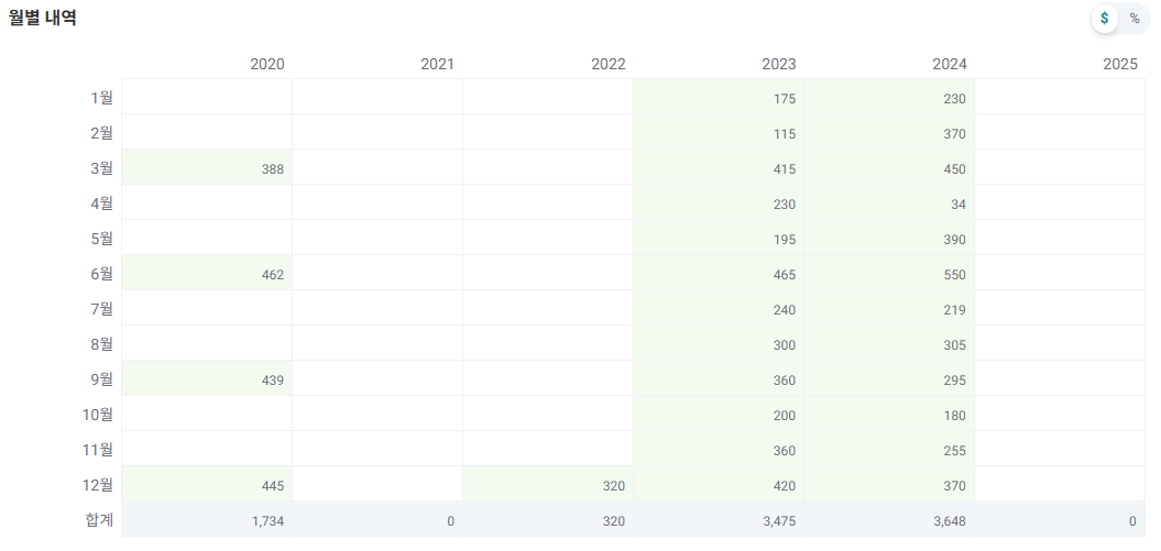 특히 2021년에는 배당이 아예 없었다니... 너무 심한게 아닌가 싶다.