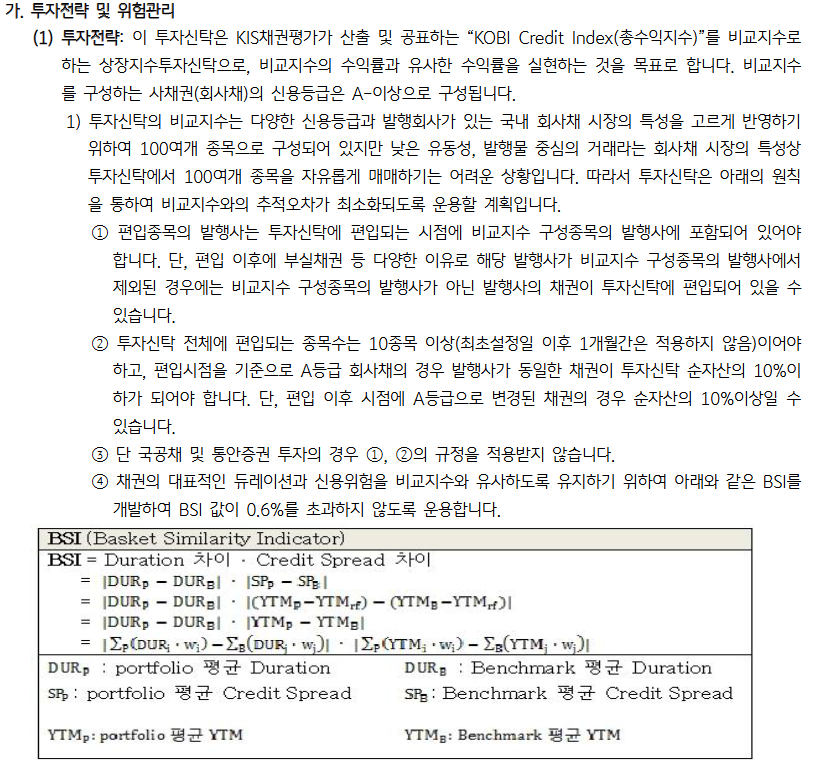 어쨌거나 비교지수를 최대한 유사하게 추적하기 위해 A등급 회사채를 포함한다고 한다.