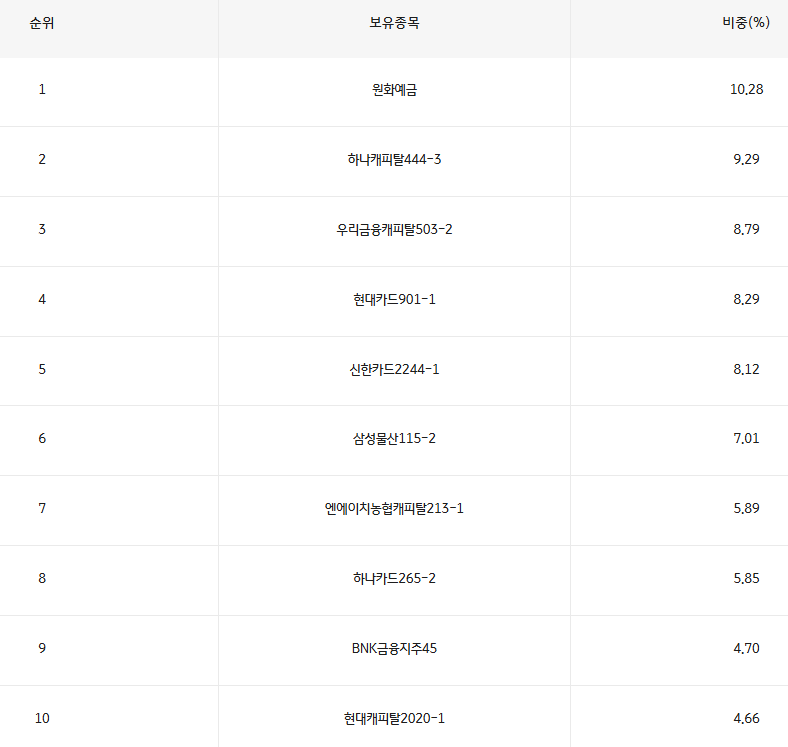 그리고 2개 중 하나는 금융채라서 이 상품을 담은 것인데, 이것도 사실상 금융채라서 큰 차이가 없어보인다.