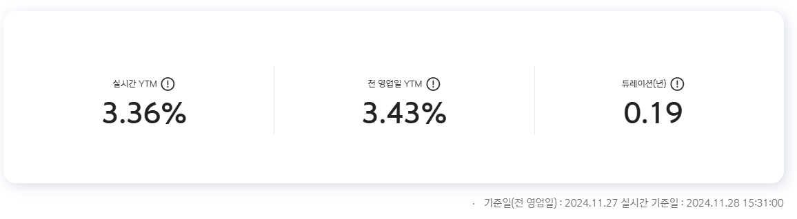 그리고 홈페이지에서 YTM, 예상되는 수익률을 실시간으로 보여주고 있다.