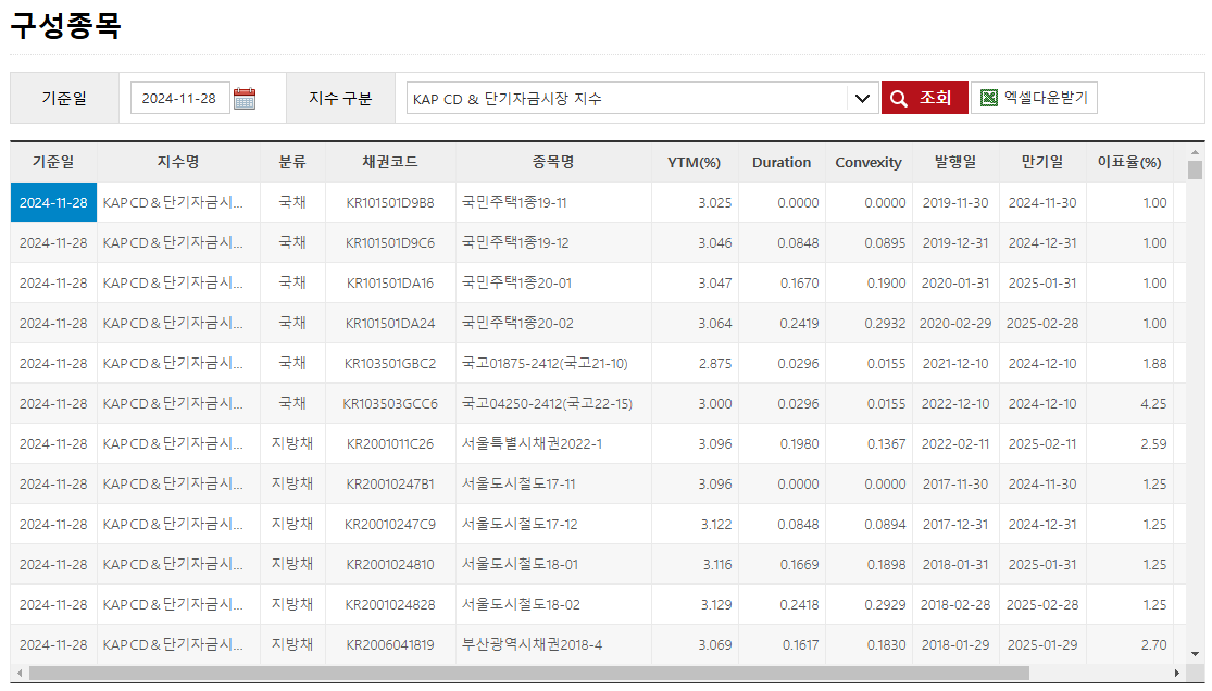 비교 지수를 설정하는 곳인 한국자산평가 홈페이지에 가서 확인하면 해당 지수에 포함되어 있는 채권은 엄청나게 많다는 것을 볼 수 있다.