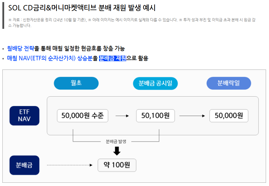 어쨌거나 지금까지 나왔던 파킹 ETF와 차별점은 매달 분배금을 준다는 것이다.
