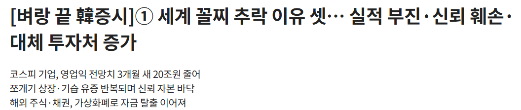 한국인으로써 안타깝긴 하지만 국내 시장에 대한 불신을 누차 말해왔고, 그로 인해 국내주식에 마음이 가지 않는게 사실이다.