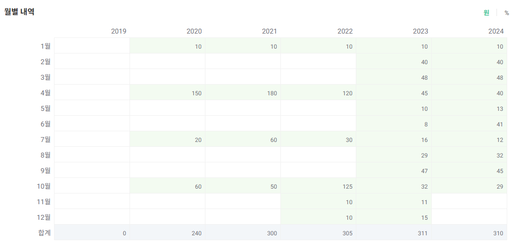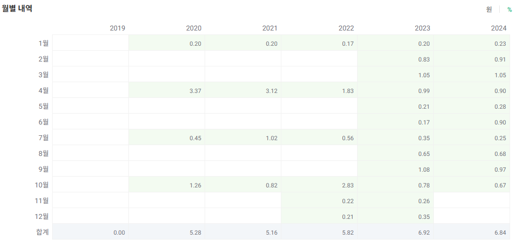 그런데 금액 자체가 워낙 들쑥날쑥해서 안정적으로 배당을 받을 수 있다고 보기는 어렵다.
