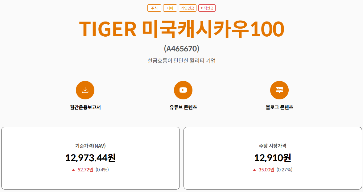 상품명 : TIGER 미국캐시카우100