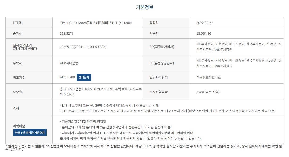 결론적으로 PLUS 고배당주를 선택했지만, TIMEFOLIO Korea플러스배당액티브도 괜찮은 ETF라고 생각해서 살펴보기로 했다.