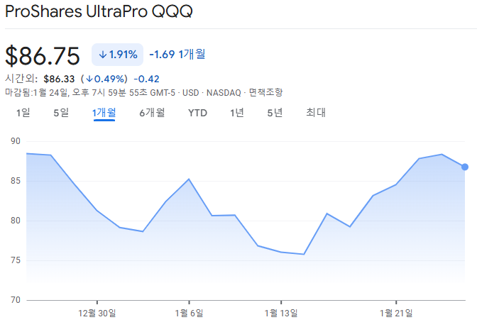 1월 초 TQQQ 가격이 조금 하락하는 것 같아서 매수를 기대했었다.