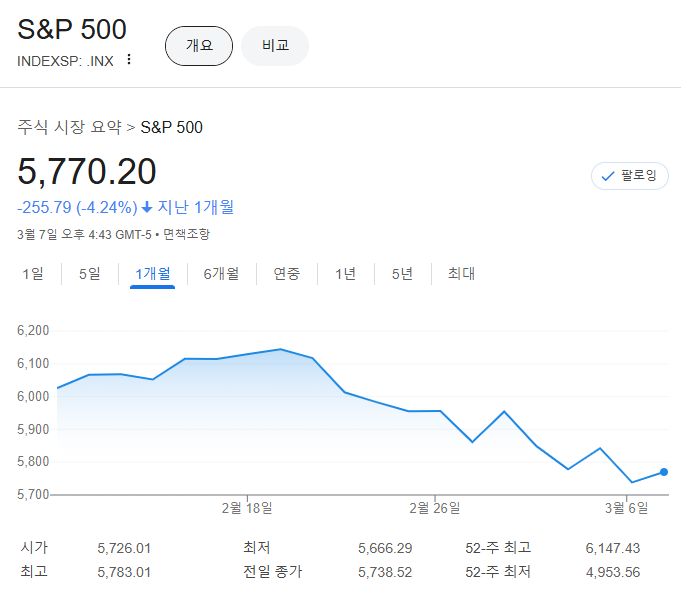 2주동안 미국 주식 시장이 상당히 많이 떨어졌다.